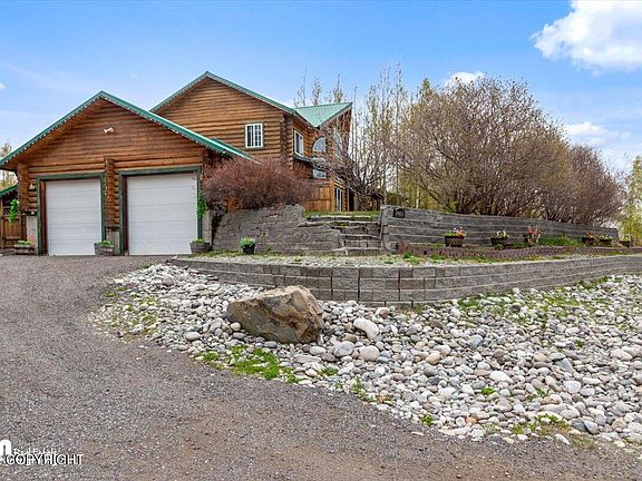 Beautifully crafted Canadian Birch log home on a flat .92 acre. Tons of parking & room to play! Zoned to highly ranked schools w/ an easy commute to Anchorage! 35 mins to Boniface Pkwy!Stunning living room w/ cozy river rock gas fireplace, cathedral ceiling & two stories of windows w/southern exposure offering breathtaking mountain views!Enjoy your coffee on the lg covered deck overlooking the yard. There is room for everyone with 6 bedrooms, 4.5 bathrooms, an office, game room, wet bar, craft room or school room, large laundry room & movie theater/family room! Master suite on main level with walk in closet & large bathroom featuring a soaking tub, tiled shower & door to the deck! Brand new high efficiency boiler & large capacity side arm hot water exchange tank! In floor radiant heat through out! Large garage/shop with oversized garage doors, plenty of storage & a new NEMA electric vehicle charger! Property is also wired and ready for your hot tub! Possible MIL or AirBandB. Mature landscaping and attractive block work. This home has been nicely maintained and is ready for the new owner! Call today to schedule your private tour!