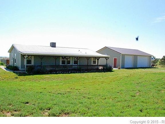 This 4 bedroom, 2 bathroom, 3-car garage home provides fantastic country living on 6.14 acres! Excellent curb appeal lends to this home's charming allure. The property and house's front rooms showcase stunning views of Pikes Peak & the Rocky Mountain Range. The back of the property provides expansive views of the Front Range and the Peyton Rock Formations. The covered front porch is an ideal location for reading, relaxing and soaking in the gorgeous scenery and views. The living area is open-concept with vaulted ceilings. The entryway offers sight-lines straight through to the backyard & flows into the great room on the left & into the dining space ahead. The dining area has access to a large 30 x 12 wood deck via french doors that allow a lot of light to enter the home. Both the dining & great room flow into the spacious kitchen with plentiful counter-space & storage. Kitchen upgrades include corian countertops, raised panel cabinetry, 2014 stainless steel dishwasher, & a 2015 stainless steel oven/range. Through the kitchen is the laundry room with closet/pantry option, & a door leading to the back deck. The master retreat is located across the home from the 3 secondary bedrooms, offering plenty of privacy. Vaulted ceilings continue in the master which features its own full bath w/ granite counters & a large soaking tub. The 3 well-sized secondary bedrooms share another full bath. The detached garage measures 30 x 40 with space for 3 large vehicles & a workshop. Located on the back of the garage is an additional 13x40 storage area w/ doors to allow parking for atvs, etc. The backyard has fenced area perfect for dogs, as well as a garden, & chicken coop. This home was freshly painted this summer & has new seamless gutters added to the house & garage. RV parking by garage. Listing Agent: Ella McFeron Company: RE/MAX Properties, Inc. Phone: 719-648-0004 Email: ella@ellamcferon.com
