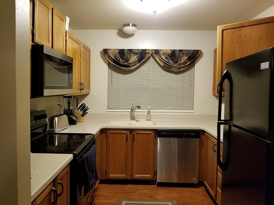 Centrally located in Fort Collins, detached garage, washer and dryer in unit. Wood flooring in kitchen and hallway. Wall air-conditioner in living room, window air-conditioner in master bedroom. Baseboard electric heating. Middle unit on end of building giving windows on 3 sides. Balcony in the back faces north. flexible