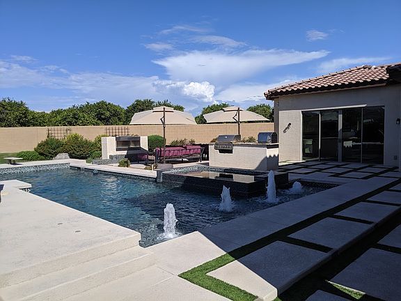 HUGE corner lot. This is one of the largest lots (over a 1/4 acre) in Lehi Crossing. The backyard is a resort style for entertaining with built-in bbq and pizza oven, fireplace, large grass area, and covered patio. The huge pool with a diving board and spa along with a tile finished shallow play area make it a cool way to spend your summer. Many additions and upgrades including expanding the kids rooms and office to 19'x11'. You will not find larger kids rooms anywhere in this community! The mother in law suite/guest house/pool house has a huge 21x21 family room and 16x16 bedroom with a full bathroom. Great location with three parks in Lehi Crossing. Easy freeway access allows to be just 10 minutes away from Tempe Marketplace and only 20 minutes from Scottsdale. Don't miss this beautiful home with resort like relaxing backyard and fantastic mountain views.