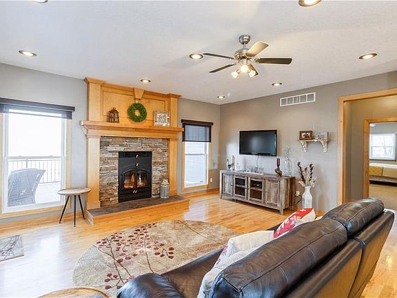 Gorgeous ranch home nestled on 20 acres m/l featuring over 5300 sqft of living space w 4 bd & 4 bth. You'll love the open concept w lg kitchen w center island, granite countertops, wall oven, cooktop & walk-in pantry. The kitchen opens up to a cozy LR overlooking the pond w wood fireplace. The master suite features a seating area w access to the 3 season porch & a lg master bth w walk-in closet. The 2 adtnlt bds are huge w a shared bth but private sink areas. You'll absolutely love the beautiful 3 seasons porch looking out the back offering more adtnl finished space. The LL features a walkout w family rm, lg wetbar/kitchen, rec area & theater rm. It also features a workout rm w sauna or an adtnl bd w a full bth. Other features include partially fenced yard, geothermal, new roof, new gutters, new deck, 20x30 outbuilding and 6.85 acres of CRP w an income of $2000/yr. There is also a mother-in-law suite featuring 800 sqft of living space w 1 bd, bth, LR, kitchen and 2 car attached garage.