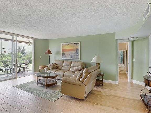 WELCOME TO THIS SPACIOUS UPDATED CONDO WITH BEAUTIFUL DEEP & WIDE GOLF & WATER VIEWS & GORGEOUS SUNSETS! THIS CONDO BOASTS THE MOST POPULAR FLOORPLAN WITH BALCONY ACCESS INTO THE KITCHEN, LIVING ROOM & MASTER BEDROOM & LOTS OF NATURAL SUNLIGHT & FRESH AIR BREEZES. SPECIAL FEATURES INCLUDE UPDATED KITCHEN CABINETRY,COUNTERTOPS, OPEN DESIGN & TILE PLANK FLOORING IN THE LIVING AREAS & BEDROOMS, UPDATED BATHROOMS WITH ATTRACTIVE VANITIES & SHOWERS, 2022 A.C. & WATER HEATER, IMPACT GLASS WINDOWS & UPDATED HURRICANE SHUTTERS ACROSS THE 25' LONG BALCONY. USED ONLY SEASONALLY, THIS WELL MAINTAINED HOME IS AVAILABLE FULLY FURNISHED. WELL LOCATED, THIS BUILDING HAS A POOL & IS NEXT DOOR TO THE CLUBHOUSE WITH PICKLEBALL,TENNIS, POOL,GOLF,GYM,MEL'S BISTRO MINUTES TO PBIA, SHOPS,8 MIS TO BEACH