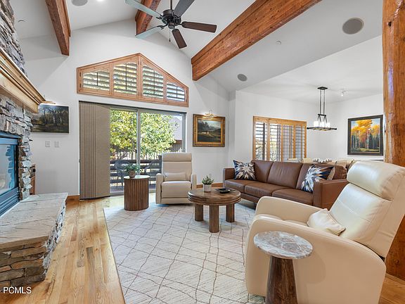 Welcome to refined mountain living in this meticulously maintained home—offering the feel of a single-family home with the ease of a lock-and-leave lifestyle. The vaulted great room and spacious kitchen open to a private deck, perfect for morning coffee or entertaining friends. The primary suite provides true main-floor living convenience, while the lower level offers two bedrooms, a private office, and a family room with a walk-out patio. Fresh paint, new quartzite Taj Mahal countertops in the kitchen and laundry, stainless appliances, hardwood floors, custom shutters, a tankless water heater, dual-zone heat and A/C, integrated sound system, and an epoxy-floored garage enhance comfort and livability. Ideally located near Quarry Village, Woodward, Park City's trail system, and minutes to free transit for easy access to Park City and Deer Valley ski resorts—just 29 miles from Salt Lake International Airport. Your Park City lifestyle awaits!