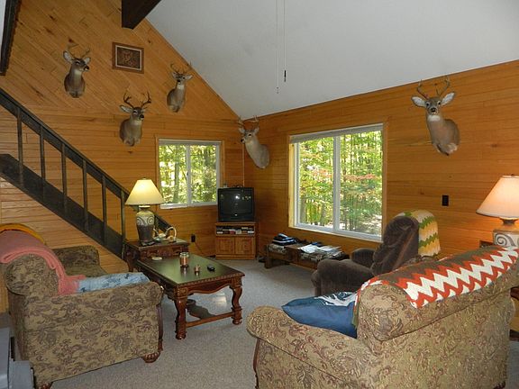 Paradise lodge in "Club Country" located on 80 acres in the Hubbard Lake Trail. 1 1/2 story cape cod lodge built in 1993. 3 bedrooms, 1 3/4 bath with open kitchen, dining, and living area with cathedral ceiling. Tongue and groove throughout and a brick wall & hearth is home to air tight wood stove to comfort the after hunt chills. Very private, peaceful setting amongst rolling oaks surrounded by private owned camps. Storage sheds for wood toys.