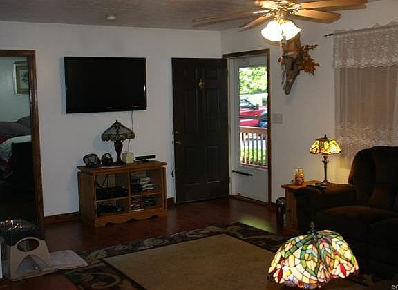 Well maintained three bedroom, two bath ranch with good curb appeal and an open concept. Home sits on a four acre plus lot with part open and part left natural. Plenty of storage with two 10' x 12' out buildings. Home also offers a full length front porch and rear deck. Come home to the country! Refrigerator, range, washer and dryer will convey.