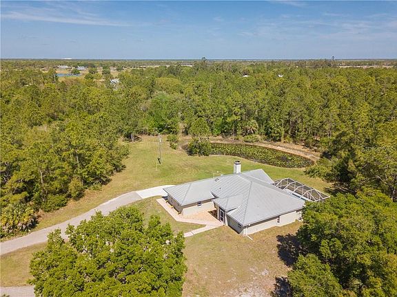 FIND YOUR SERENITY ON THIS BEAUTIFUL 6 ACRE 3 BEDROOM 2 BATH POOL HOME. Nestled back off the road the driveway opens to peace and tranquility overlooking a large stocked pond where often you see deer, turkey and other wildlife. The home features engineered hardwood floors throughout, new kitchen appliances recently updated, a real wood fireplace for those cooler nights, pocket sliding doors from the family room, living room and master bedroom brings the inside out to the screened in pool oasis. A new water conditioning system, pool pump and filter to name a few were rencetly upgraded. A list of improvements are attached. NO HOA AND NO DEED RESTRICTIONS. Punta Gorda airport is only 15-18 minute drive. New mom and pop restraurants are only a short drive with some of the best cooking in our area. This area of Punta Gorda is in high demand. Schedule your private showing today.