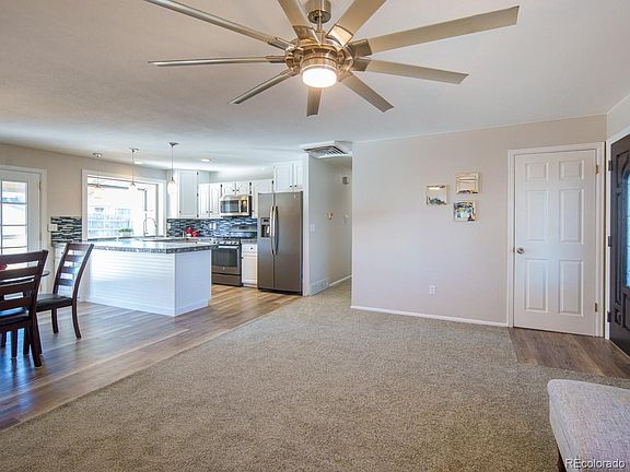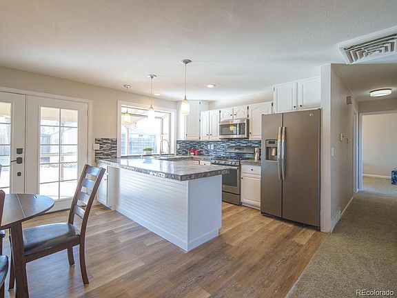 Offers due 2/26 by 11am. Great opportunity to own a spacious open layout 4 bed 3 bath in Thornton's Woodglen subdivision. Interior highlights include updated paint and flooring throughout, custom tile surrounds in baths, new light fixtures, open concept layout from kitchen to dining to living room areas, walk in closet in largest bedroom on main level, built in laundry chute, stainless steel appliances, and jetted bathtub. Exterior highlights include spacious lot on nearly a quarter acre, two car attached garage, two storage sheds in backyard, covered deck in rear. Great location close to schools, shopping, restaurants, and more! No HOA, no metro tax.
