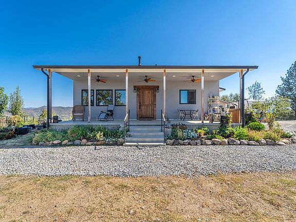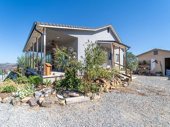 1 Address & 2 Parcels together is approx 98.41 acres. If peace & quiet with a view & some land far away from neighbors is what you are looking for,this is your chance to escape to your dreams. Top of the Mountain with amazing sunsets,sunrises, & seasonal beauty.Home ext. has a custom smooth stucco finish, 2 septic/2 wells. Enjoy the covered porch that faces the West for your amazing sunsets. Open concept and natural light best describe this Country style home built in 2019 with modern features like tankless WH,insulation and modern storage systems. Luxury vinyl floor, custom textured walls & bullnose corners throughout home,2 car garage/shop feels like a home with textured walls and windows to match. Ranch features engineered gravel roads meeting CalFire specs for turnouts. 1 Address & 2 Parcels together is approx 98.41 acres. Land features a possible larger home pad on top to build your custom home. Seasonal creeks,gardens,wildlife,domestic farm,trees and RV parking/access on property that runs along the Calaveras River. Seller Credit available!