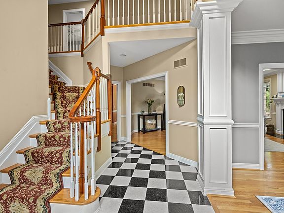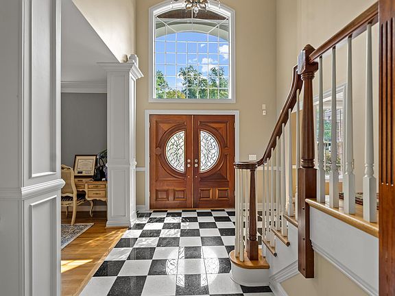 - Description: High Ceilings/ 2 Story Entry/ Columned Accents/ Chandelier/ Palladium Window/ Beautiful Staircase