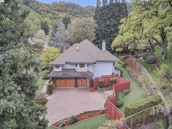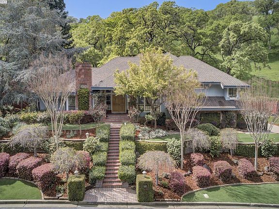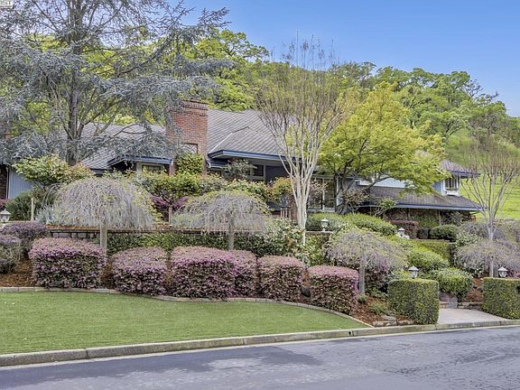 Don't miss this rare opportunity to own this beauty tucked in Lafayette's coveted Baywood community. This stately home sits on one of the largest lots in Baywood and is perched in a premium location surrounded by hills and oak studded trees. This executive home boasts a functional floor plan with grand entry, a tastefully updated kitchen, a cozy family room with custom touches like vaulted wood beamed ceilings and bar space. Also tucked on this level is an elegant dining room, living room and bonus office/bedroom as well. Head downstairs to an executive office space and a billiards room. Your mini wine cellar is down here too. The upper wing of the home features the expansive primary bedroom with fireplace and a private deck. Just down the hall sits the laundry room, three spacious bedrooms and 2 full bathrooms. This home has been recently refreshed with new carpet, paint, a newer presidential grade roof and is ready for the new owners to move right in or potential to make this space their own. The captivating yard sits on .54 of an acre that is nearly fully landscaped. The paver patio and walkways, colorful gardens, synthetic grass, mature trees and breathtaking views from your premium lot backing to Briones Regional Park truly make this a 10 out of 10!