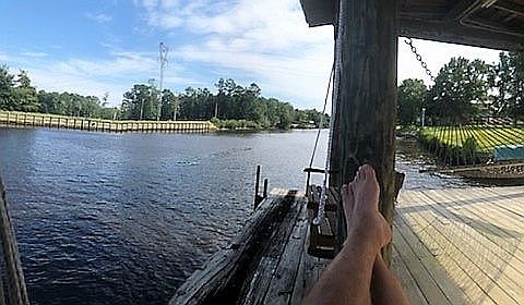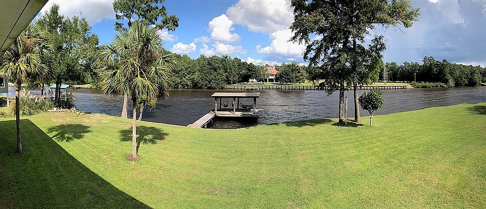 Beachy, waterfront home with walk around porches, french doors and large covered porch overlooking your dock on the Tchoutacabouffa river. One mile to WalMart and Chick Filet. Six miles to beaches, casinos, and Keesler AFB.