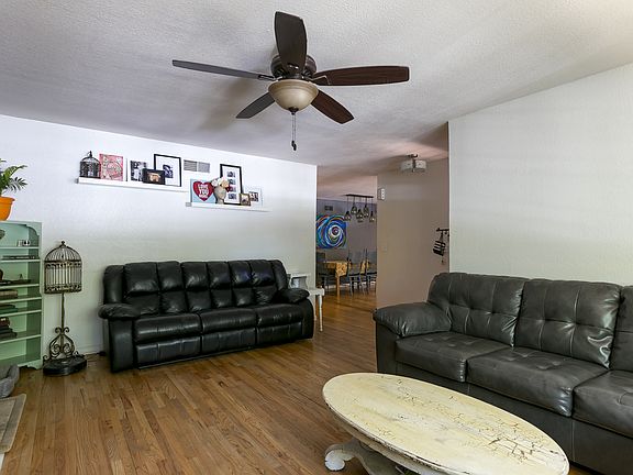 A drought tolerant landscape greets you as you enter this spacious 4 bedroom, 2 bath home. Beautiful oak flooring adorns this open floor plan where the living room and a cozy fireplace welcome you as you come in. Enjoy a large and open kitchen with a dining area, corian countertops & stainless steel appliances. Enjoy newly installed overhead lighting and dual pane windows throughout the home. Just a step down from the dining area is the large open family room with built in shelving. From here you can head out to the hardwood deck and private backyard area which are great for entertaining. Beautiful drought resistant, high quality, synthetic grass covers the backyard. This stays green all year while saving you big on water. In the back there is also a large gated dog run lined with pea gravel that has a custom built deck for your dogs to enjoy the sun. To top it all off there is an oversized 2 car garage with abundant storage. All this while being just a short walk to Sinsheimer Park, School & Swimming Pool.