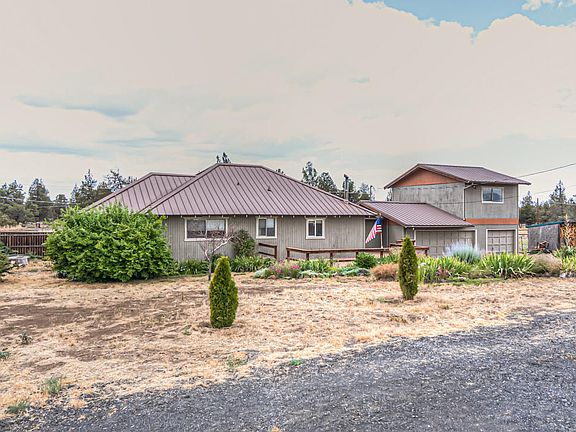 Country living not far from town. Older 4 bedroom 2 bathroom home on 10 acres with 7 irrigated. House has had a total kitchen remodel with hickory cabinets, Corian countertops, and SS appliances. The bathrooms were also redone. New carpet was added along with a pellet stove. Cute wood stove in the kitchen adds to the character of the home. Two bedrooms are separate and over the garage. There is a new large two story 3456 sq.ft. general purpose building with great views of the Cascades and Smith Rock from the second floor and is not complete. The bottom floor is mostly complete with a drive through center section. 7 acres of irrigation already paid for 2024 from COID which is mostly gravity fed 24/7, is in hay. Approximately $20,000 of irrigation equipment included. There is a barn, coral and pasture for horses or other animals. Property is totally fenced.