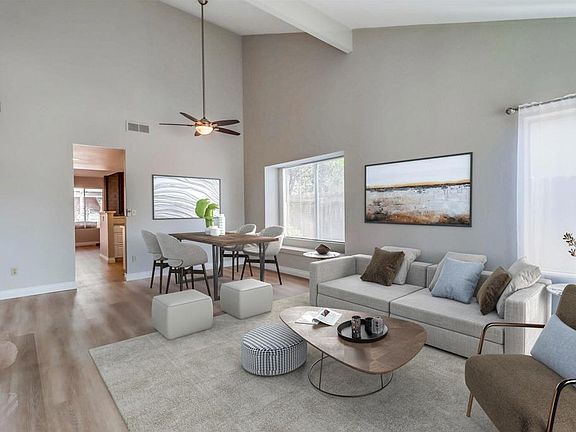 Welcome to this beautiful single level home situated in the foothills of Mt. Helix, in a quiet La Mesa community. As you approach the home, you'll appreciate quiet tranquility of this community. Enter and you will discovery an open concept floor plan with high vaulted ceilings seamlessly combining the family room, dining, and kitchen areas, creating a perfect space for both entertaining guests and everyday living. Natural light floods the living room with large windows overlooking the shady front yard. Stylish light oak laminate flooring runs throughout this single level home. The spacious and well-appointed kitchen is the heart of the home. It offers recessed lighting, refrigerator, expansive cabinetry and counter space. The kitchen is the heart of the home and opens to the family room. A large slider connects to the private backyard where a shady patio invites you to a southern California indoor/outdoor living experience. You’ll find that the sweeping, single-story floorplan, makes the house seem a lot larger than the square footage would suggest. A brand-new, electric fireplace with optional heat output is the focal point of the family room. Enjoy the luxury of your fireplace all year long! The bathroom vanities, lighting, and fixtures have been recently updated and the home is freshly painted, Just grab your things. You’ll love the primary suite, complete with luxurious en-suite bathroom, walk-in shower and a spacious walk-in closet. A sliding door leads to the enormous pool sized yard offering endless possibilities for outdoor enjoyment. Create your personal oasis. You’ll appreciate the Central HVAC system and the spacious 2 Car Garage featuring plenty of built in cabinetry and additional large storage area, plus Washer & Dryer Hookups for your convenience. Secluded neighborhood enclave, yet near Shopping, Restaurants, Gym, Movies, Library, Fire Station and a couple of minutes to Hwy 94 taking you to Downtown San Diego in less than 15 minutes. Highly rated schools, La Mesa-Spring Valley School District and Grossmont Union High School District. Some of the top schools in the area include Helix Charter High School, Avocado Elementary, La Mesa Middle School, Monte Vista High School, and Cuyamaca College. Don’t let this one slip away, see it TODAY …you’ll be glad you did!