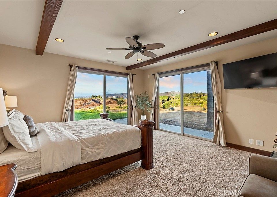 This single story newer built home features over 4,700 sq.ft of living spaces. Newly designed and furnished for comfort, style, and entertainment. Provides 75-inch Smart TV in the living room, Pool Table, Wood burning fire place etc. Brand new microwave, washer and dryer, coffee machine, dinnerware, silverware and many more. Stay comfortable with Two central A/C and enjoy the elegant open layout with modern finishes. Front pond with water feature fountain and dock, Beautiful landscaping around too, more than 200 trees planted last year on the property. Located in Temecula Wine Country Equestrian District in a 19 acre horse ranch, The house is completely separate from the barn and sits on the top hill. Less than 10 minutes away from Galway Downs and major shopping plaza, dining, About 15-20 minutes to the I-15 freeway, all famous Wineries and old town Temecula! Short-driving distance to San Diego County and from Orange County, San Bernardino County.