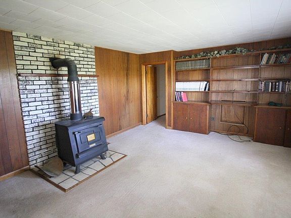 10 acres with lots of highway frontage, fenced for livestock, two ponds, two outbuilding, mature shade trees. Blacktop circle driveway and large attached garage workshop area. Ranch home with newer Lennox heat and A/C wall units. Two bedroom and office (possibly 3rd) bedroom, 2 baths. Living room with woodstove, kitchen has plenty of cabinets and storage. Living room-dining room combo. Plus a 19x11 carpeted work area with heat and cool.
