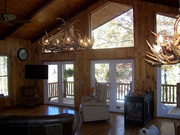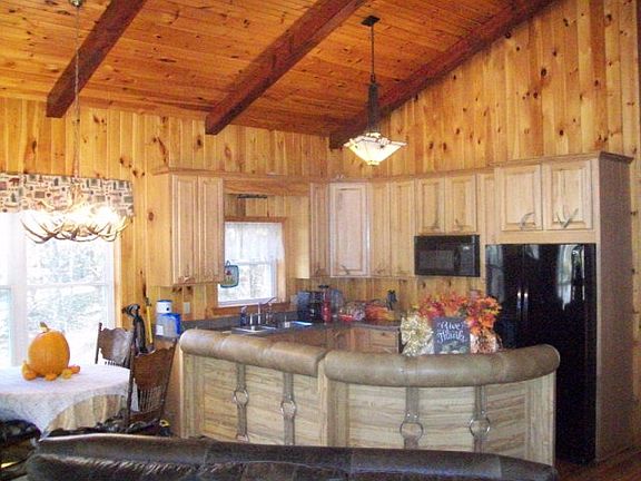 Custom built home on 15.24 ac. Home features open floor plan with nice Kitchen, Stag horn lighting and cabinet handles, lots of wood types, with cathedral ceilings, Hardwood flooring, Large gas log heated to view flames from 3 sides. metal roofing, 3 BR and 2 Baths with views. One large Master bath with nice Jacuzzi tub. Full open basement with two garage doors, entrance door, and plumbed for additional bath. Property features an RV site with septic, water and deck. Even a second older farm house. Small pond. 2 carport metal sheds. Several other house sites. Partially paved drive. Laundry room on main level. A private setting and move in ready.