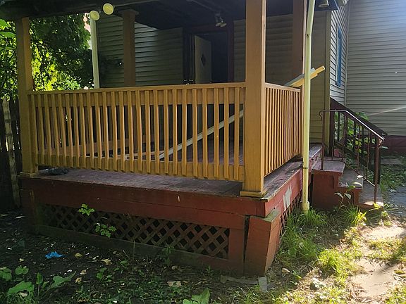 Single family home is located on quiet street. There are front and back porches. Bedrooms are the large size. Carpet is all around the house