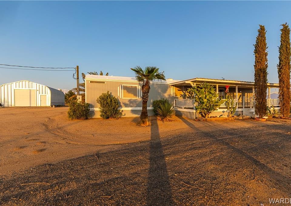 ENJOY YOUR VERY OWN OASIS IN THE DESERT!! Newly updated and ready for new owners!! This adorable 2BR, 2BA, 934 sq. ft. SW sits on a fenced 1.17 acres and is just a short distance off pavement. 25'x36' metal garage(recreational toys/trucks and boat garage parking)*This home has equestrian privileges' too , so bring the horses and the furry friends to enjoy this gorgeous property**The exterior has been recently painted with features to include a huge 12X40 covered front porch for your outdoor entertaining, sit, relax and take in our amazing Arizona views and sunsets, a 25X36 metal garage/shop with 220 for all your toys and storage needs** a 12X36 metal covered RV Parking, in concrete steel girder foundations,* Exterior landscaping includes several different kinds of fruit trees and shade trees (palm, cypress, oleander etc..)** The interior of the home has tape and textured walls through out with a split open floor plan, interior painted , vaulted ceilings, quality window coverings & large view windows* Newer evaporative cooler and a electric window AC*This home features newer laminate, vinyl and carpet throughout* The home feels so much larger* Spacious living room. Dining area off the kitchen* Open kitchen with electric range stove and newer refrigerator*The master bedroom features a walk in closet, full master bathroom* the guest bedroom is nice size with a full guest bathroom. Great place to entertain*Fenced rear yard for privacy**If you enjoy the outdoors you will love this property* Feels like paradise* Since Golden Valley is a suburb of Kingman and Bullhead City, this home offers the convenience of these bigger cities but still having the small town atmosphere* You'll appreciate the open space for evening relaxation and amazing sunsets or the early morning sunrise coming up over the mountains**The beautiful birds chirping will be the sound when you wake up in the morning** Enjoy the off road trails for all your ATVs as well as horse riding trails**Call for personal tour