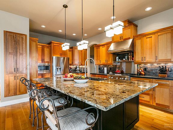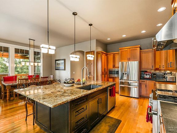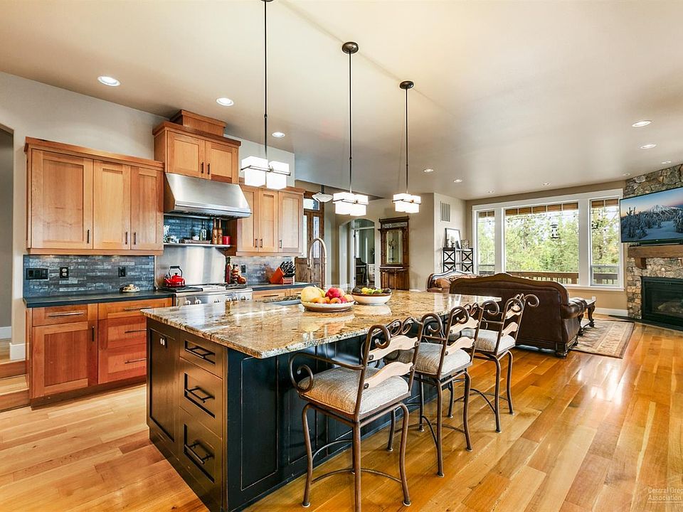 Custom Westside family home freshly remodeled in 2019 with detailed finishes throughout. This 5 bedroom 4 bath home offers a wonderful layout for family and entertaining. Step into this inviting home to find the great room presenting grand views from each window! Gourmet kitchen features high end appliances, over 50 feet of granite slab countertops, breakfast bar, pantry. Main level offers large master bedroom large bonus/media room, large office with Custom Alder Wood Desk and Cabinetry, guest suite, bathroom, finished details throughout. Upstairs includes remodeled large bonus room with larger window added views of Smith rock and Jefferson. En-Suite and additional bedrooms with Custom Alder Wood Shelving and large closet space. Situated on .48 acre lot beautifully landscaped. Luxurious Outdoor Kitchen with slab granite, custom BBQ, Smoker/Oven provides ample room for entertaining/seating under Pergola with stone pillar finish. Custom speaker system throughout. Large 3 car garage.