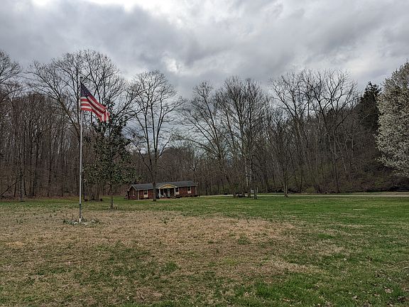 BRING THE HORSES! Home tucked away on dead end, quiet backroad on 4.10 acres, sounds of nature and creek & raise a mini farm / away from all the hustle & bustle. Resident: mainly brick 3 Bdrm * Bonus rm w/ bath used as 4th bdrm as a master bedroom * orig. hardwood & tile in bath * open kitchen/dining room * ex. large living room w/ skylight for natural lighting. BONUS: 2 car detached garage w/ living qtrs above > 2 bdrm * 1 bath * living room * dining room * kitchen * utility room. Garage/Guest Home has sep. light meter. Use as a man cave, in law qtrs, monthly rental income or Air BnB. Extra Bonus: Horse stable, Gazebo to sit & listen to the peaceful sound of the stream. This property is ready for your personal updates/touches & ready for you to call HOME! 1 YR Home Warranty provided.