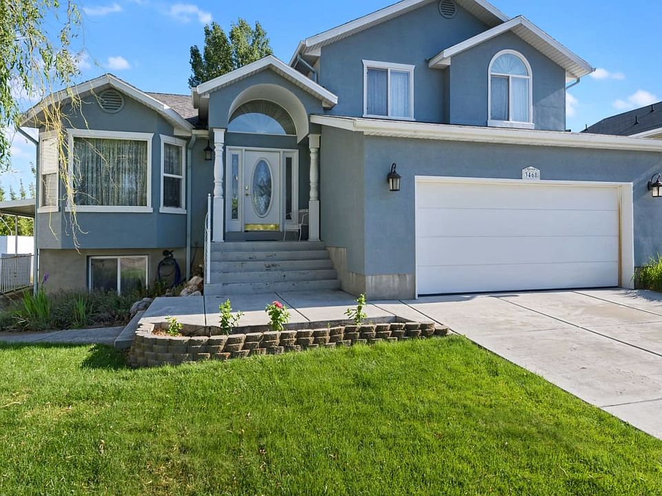Three tone multi level home with large master suite with a garden tub/shower, second full bathroom and two bedrooms. Large family style kitchen, maple cabinets, bay window, and with tile floors throughout entry, kitchen and dining. Formal living room and a family den with walk out french doors and covered porch. Laundry room and half bath on third level. Basement 3/4 bathroom with fourth bedroom and dedicated office with seperate entrance. Finished 2 car garage and covered/gated 40'carport.
