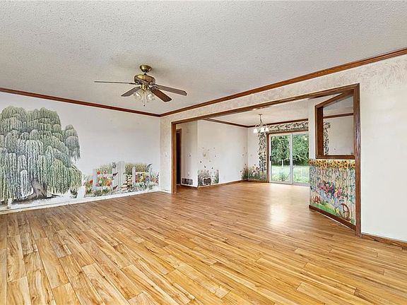 This modular (not manufactured) fixer upper home could be fixed up as the main home seems to be sturdy & structurally sound w/a full bsmt. piered. But do your own due diligence! Or demolish & build your dream home on this BEAUTIFUL ACREAGE, fenced in corner tract! Old barns MAY BE salvageable, there's alot of concrete flooring to work with to rebuild or repair barns/lean to's. Seller says there is a larger spring fed pond, it's hard to see with all the trees. Newer stove, dishwasher, refrigerator, washer & dryer.