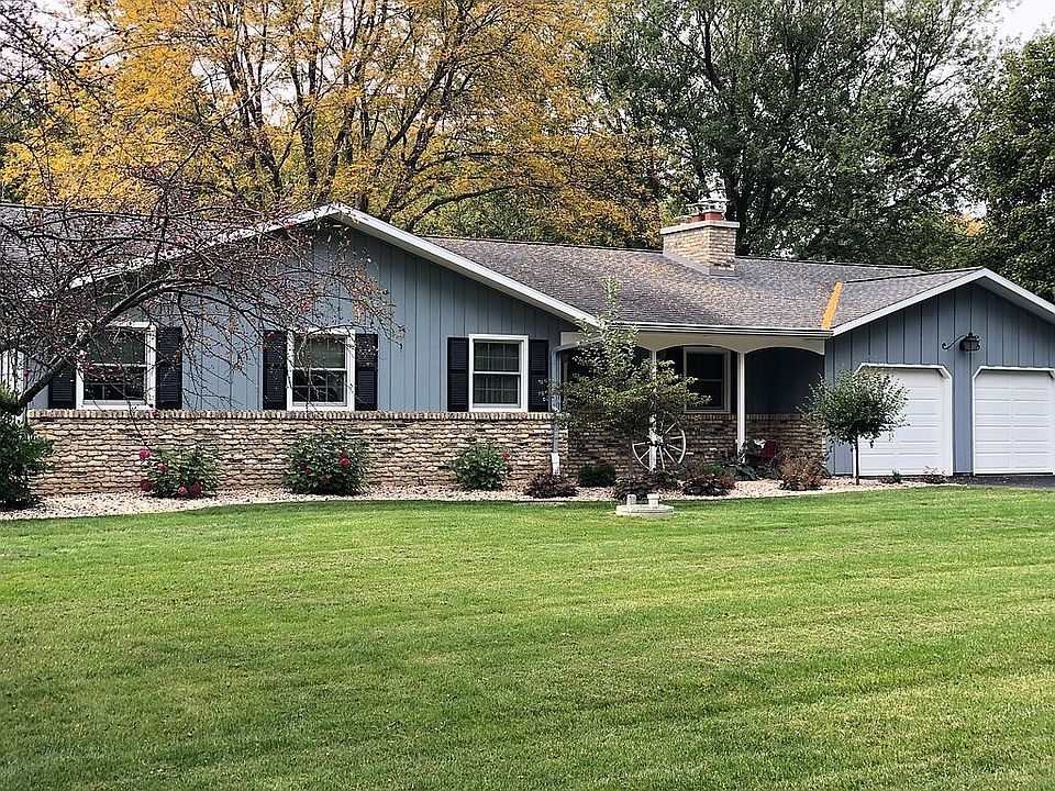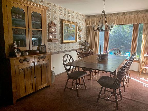 Charming home on large corner lot featuring the elegance of a French Cottage Exterior. Home includes expansive living space with a bright four-season porch, spacious deck and large family room. A private home office sits toward the back of the house, perfect for remote work. A stand-alone shed is located in the vast back yard with plenty of storage. Notable Features: - Private home office - Upstairs features gas fireplace - Downstairs features wood burning fireplace - New carpet downstairs in 2021 - New septic pump in 2020 - New garage doors in 2017 - New paint on house and shed in 2017 - New landscaping in 2017 - New furnace in 2017 - New air conditioner in 2017 - New water heater in 2016 - New windows and french doors in 2016 - New dishwasher in 2016 - New washer and dryer in 2015 - New sidewalk in 2014 - New driveway in 2014 with new sealcoat last year *Please Note: Pool table not included