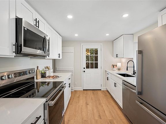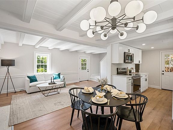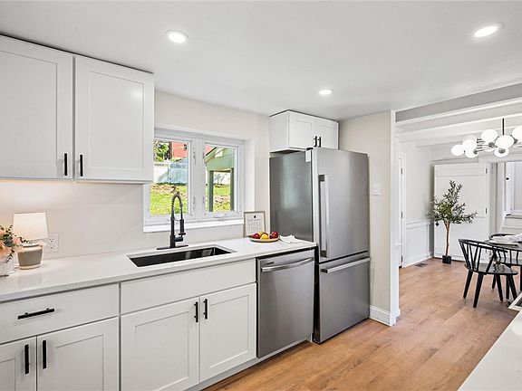 Welcome to your newly renovated home, just 10 minutes from the Waterfront. This property is brimming with updates, including a new roof, HVAC system, kitchen, bathrooms, flooring, and lighting. The modern white kitchen features quartz countertops and brand-new appliances, seamlessly flowing into an open-concept dining and living room with a cozy wood-burning fireplace. The first-floor master suite offers a luxurious master bath, while the second floor includes two additional bedrooms and a second bathroom. The home also includes a one-car integral garage and a spacious, dry basement for storage or workshop. There is a also a covered back porch and a yard for relaxing or enttertaining.