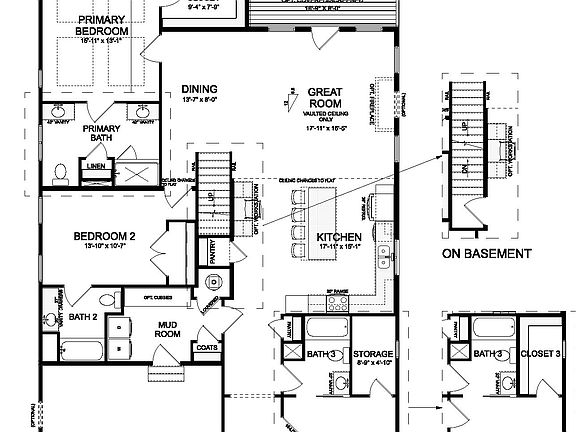 The MULBERRY showcases an open concept design with three bedrooms each with a full bathroom on the main level. A stunning great room with vaulted ceiling and fireplace open to the expansive kitchen and dining room. Upstairs an additional bedroom, full bathroom and loft area with an option for 5th bedroom. Stepless entry makes this universal home perfect for everyone! Hardwood flooring, granite countertops and stainless-steel appliances in the kitchen, ceramic tile in the full baths. Personalize your home in our 3,000 sq ft professionally staffed Design Center.*This home also offers additional choices for a 5th bedroom, and basement with additional 6thbedroom, full bathroom, rec room, media room and plenty of storage.