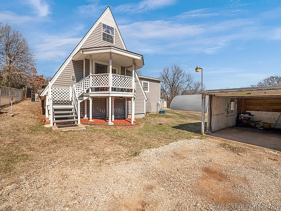 Looking for a place to GET AWAY? We have just the place! Secluded A-frame home on 3/4-acre lot with 40X40 Quonset hut workshop and 20X20 storage building. Inviting covered front porch and large covered back patio. Large living room with wood pellet stove for economical heating alternative. Two updated full baths, one with walk in shower and one with claw foot tub. Laminate flooring throughout, carpet in primary bedroom. Refrigerator, washer/dryer stay. Low maintenance exterior vinyl siding. Other exterior features include: fully fenced yard with gates at two entrances, storm shelter, covered RV parking and carport. Keystone lake very nearby and Cimmaron River within walking distance.