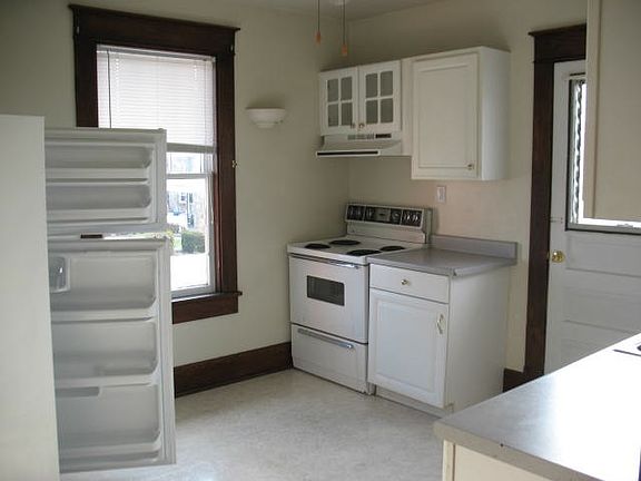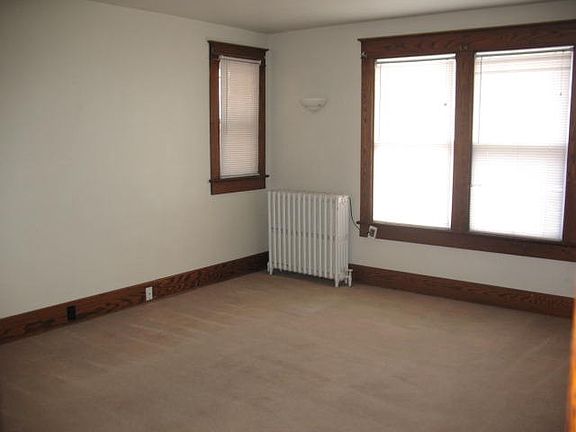 Second floor apartment with gas hot water heat and detached garage. Monthly rent includes lawn care and snow removal. Nonsmoking. Application/credit report required.
