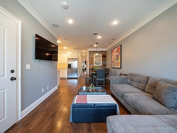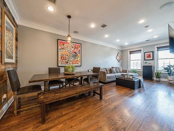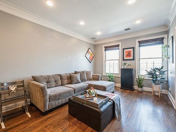 Located in The Village sector of Downtown Jersey City, this expansive 3 bedroom / 2 bath condo is ready for its new family. Enjoy 1,173 sqft of livable space, an open concept floorplan and state-of-the-art finishes, making for an ideal place to come home to after a long day of work, and a perfect weekend host for family and friends. Step inside your new home complete with gleaming hardwood floors, a beautifully renovated kitchen, two great-sized bedrooms, and an impressive primary bedroom with ensuite. The open concept floorplan features built in speakers along the ceiling, an alluring accent wall along the dining quarters, and a lovely modern kitchen. Your dream kitchen is complete with an abundance of cabinets, not to mention a stunning white-cabinet finish to brighten the space, ample counterspace with granite countertops, a beautifully laid complimentary backsplash and equipped with a stainless-steel appliance package. Off the kitchen, you will find a neatly tucked away laundry closet with plenty of space to store necessary belongings. The over-sized primary bedroom includes walk-in closets, an ensuite featuring a soak-in shower enclosed tub, and beautifully laid wallpaper, creating an accent wall. The other two great-sized bedrooms and full bath share the same style and similar finishes. A truly lovely home with a financially strong condo association, this is a MUST SEE! Additionally, you have storage in the attic, as well as a closet downstairs for items like strollers, etc. Step outside and enjoy a nice stroll through Downtown Jersey City full of great ambiance, an array of restaurants, pop-up shops and not to mention Hamilton Park, complete with revamped dog runs and playground.