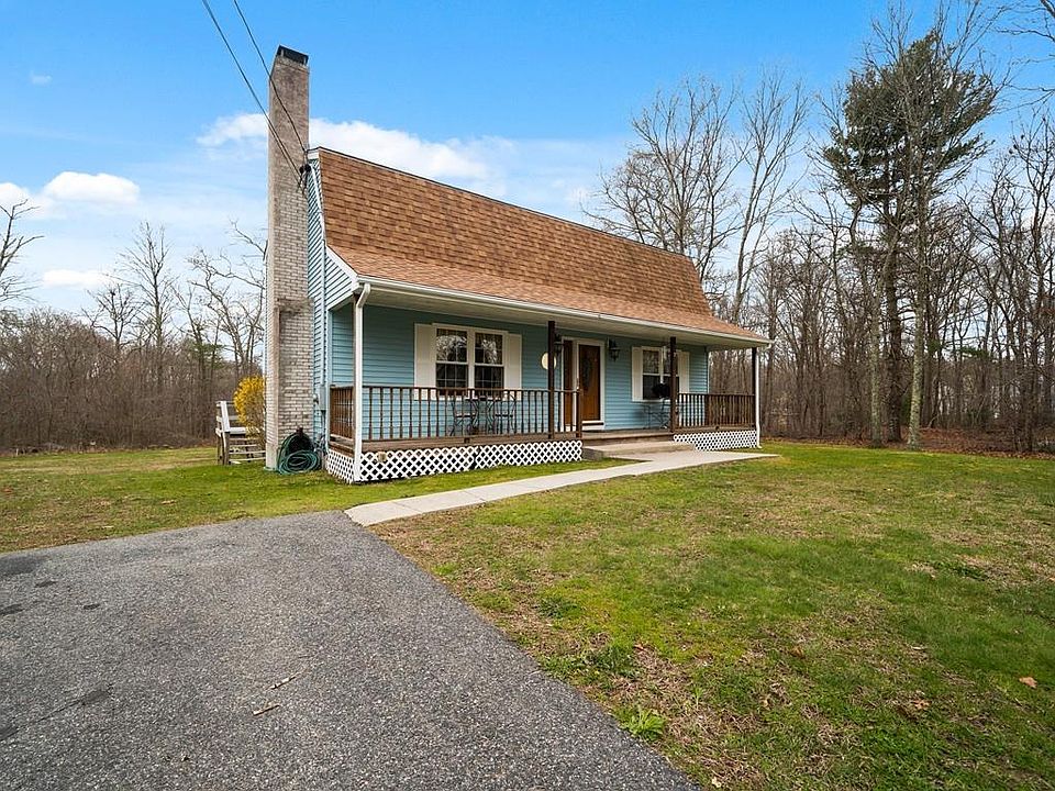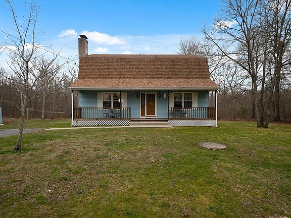 Gorgeous well maintained Colonial set on 14+ acres of quaint peaceful land! Featuring a 4 year old roof with architectural shingles. Nice blue siding and a large front porch- great for summer days! Inside the home you will be pleased with the accommodating sizes of the rooms. Fridge in the kitchen is 1 year old. Half finished basement with a walkout. Central A/C and 3 zones for heating will make this home efficient to heat and cool! Large sunroom has been insulated and has a wood stove. In the back yard there is a 25x25 raised garden bed, about 1 acre cleared and 2 storage sheds. Set back off road 500 feet, but still close to amenities. One year old boiler. Two oil tanks in basement as well.