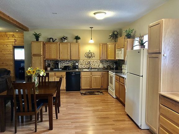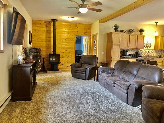 Delightful country home boasts one level living with 3 bd, 1 ba, new Pergola swing set fire pit, new flooring, 3 sources of heat: in-floor, new wood stove and baseboards (all plumbed for an outside wood boiler for house & garage, cement pad in place). Spacious front outdoor entertainment 18x44 patio and newly planted apple trees and plum tree. Roam your 32+ acres with mowed trails throughout. Take your side by side or 4wheeler to the3 food plots, 1 enclosed box stand with stairs & a tree stand with ladder. After a busy day jump into your above ground pool or the hot tub! Nature surrounds this beautiful home. Call today for your private tour.