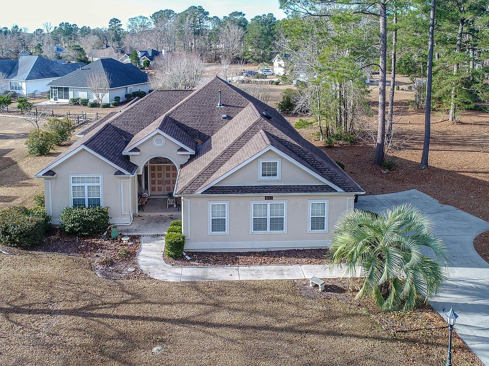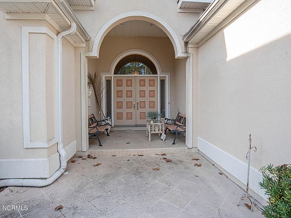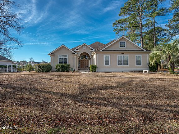 This well-maintained one level home located in the gated golf community of Brunswick Plantation is on the market for the first time and ready for a new owner to enjoy for many years. Situated on a quiet cul-de-sac street, within walking distance to the clubhouse, you will appreciate the location. As you enter the double front door, you find an open floorplan with ample natural light and tall ceilings. The living room is anchored by a fireplace with built in cabinets on either side. The kitchen features plenty of cabinets and countertop space for entertaining. Adjacent to the kitchen is the dining room, and beyond that is a really nice sunroom that can be used as a second sitting area, an office, or however best suits your needs. The master suite is located in the rear of the house and is a generous size that easily accommodates a king sized bed. The master bath features both a shower and a jetted tub, plus two sinks in the vanity. The walk-in closet is quite large. The two guest bedrooms are located in the front and share a full bath. The laundry room has a utility sink and extra cabinets built above the washer and dryer. There is a 2 car garage with attic storage above. For those of you who enjoy the outdoor space, the patio and back deck are for you. The deck spans almost the entire width of the house. If a buyer is interested, the home can be sold almost completely furnished (minus a few personal items and decor pieces). In addition to the peace of mind that comes with a gated community, residents in Brunswick Plantation enjoy 27 holes of golf, multiple outdoor pools, an indoor pool, a new clubhouse with a fitness center and there are tennis & pickleball courts. The community allows golf carts for getting around and you can use your personal cart on the course. Calabash, which is the seafood capital of NC is less than 10 minutes away and beautiful Sunset Beach is 15 minutes away. Take advantage of this opportunity, you will enjoy life here at the coast.