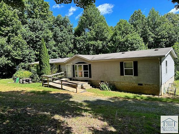 This doublewide in Meadows of Dan has over 2,000 sq. ft., 4 bedrooms, two baths, family room, living room, big kitchen, and a utility room. You will enjoy the privacy from the nearly 5 acres of secluded land and a creek joins the rear property line. The acreage is all wooded with mature hardwoods. On the rear of the home there is a large covered deck plus another deck large deck. This is a fixer upper and is being sold AS-IS with the seller doing no repairs. This property is only a few miles from the Blue Ridge Parkway and is located on a state maintained lightly traveled road. At a elevation at almost 3,000 ft. come enjoy the cooler temperatures the mountain has to offer.