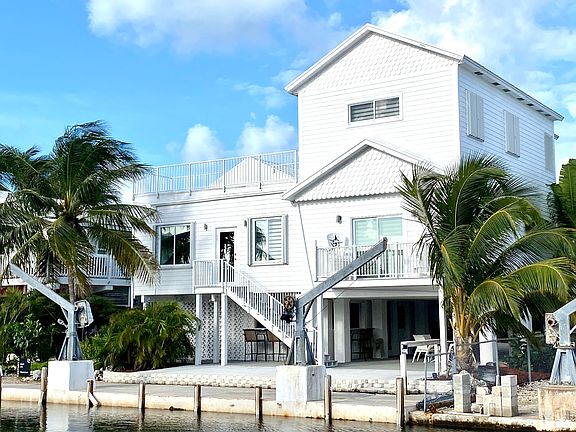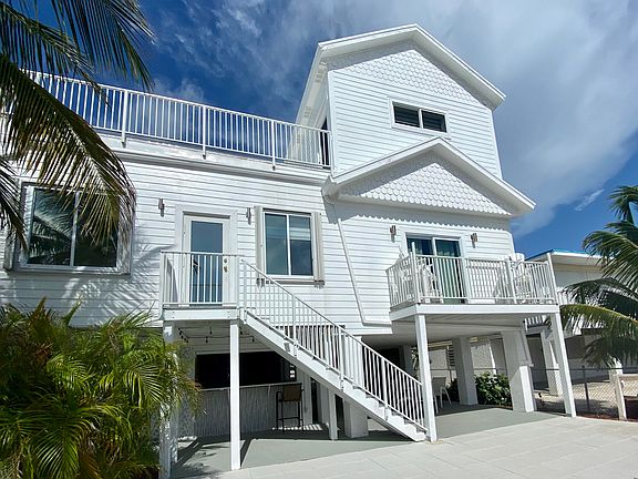 LOCATION, LOCATION, LOCATION! This gorgeous 3 bedroom, 3 bath home has been completely updated throughout and is located on a deep, wide, flow-through canal with a short 5 minute trip to open water. No bridges to the Ocean and a tall 15' bridge clearance to the Gulf. The spacious 2,575 sq. ft. interior features bamboo covered cathedral ceilings, upgraded kitchen, granite counter tops, gas cooking, new built-in microwave, new dishwasher, upgraded baths, bamboo staircase, easy-care laminate floating wood floors, central air, huge top floor master with a roof-top deck and the list goes on. Exterior features include lush landscaping, hardiplank siding, a metal roof, accordion hurricane shutters, composite Trex decking, a large 748 sq. ft. legal enclosed storage area and outdoor bar with