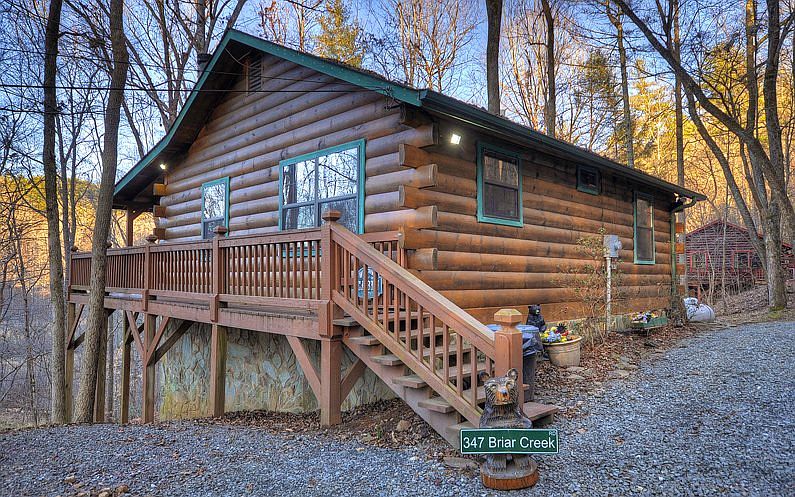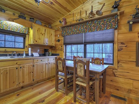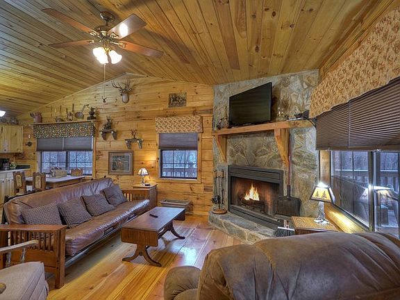 Cute as a button and income producing! Creekfront real log cabin in beautiful mountain setting. Open floor plan with wide plank wood flooring, all wood interior, cathedral ceilings, covered deck, walk-in crawl space great for storage, creek frontage, fire pit area, already established in successful rental program! Great for those quick weekend getaways since it's conveniently located between Ellijay & Blue Ridge! TURN KEY...everything you see stays!