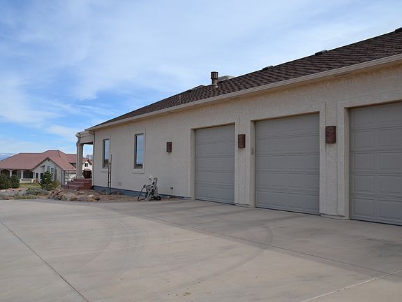 Striking four bedroom custom home on two plus acres near the Colorado National Monument overlooking the Grand Valley. Attached 3+ car garage with circle drive and added parking area. Breath taking views from every window. The private rear courtyard with 1200sf covered patio, pergola and covered entries provide relaxing outdoor living spaces on all sides of the home. Low maintenance landscaping with drip irrigation system along with gas fire pit and feature lighting set a relaxing mood. Large inviting interior living areas with architectural arches and custom feature lighting add to the experience. The spacious kitchen with stainless steel appliances, solid quartz tops and energy efficient lighting enhance your entertainment possibilities. Oversized laundry/hobby room, walk-in pantry and closets provide plenty of storage for everything you need for your home on the hill.