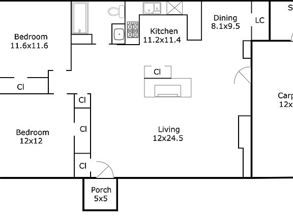 - Laundry: Electric Dryer Hookup, In Kitchen, Laundry Closet, Main Level, Washer Hookup
