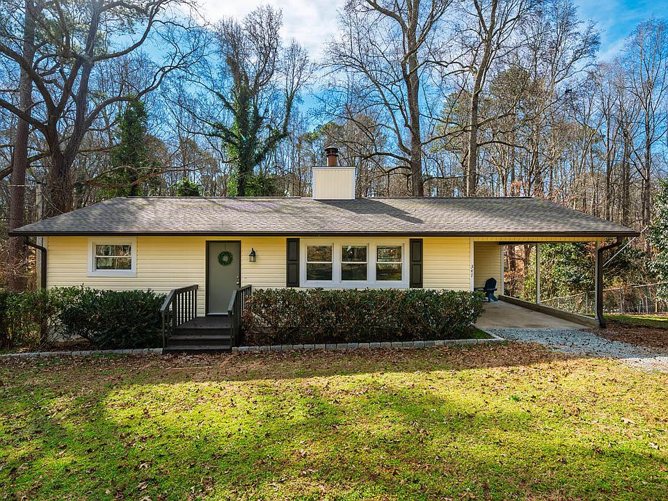 This delightful 2BR/1BA bungalow offers a fantastic opportunity for living in a sought-after location! Features a light and bright kitchen that overlooks the backyard and gas fireplace in the family room! Spacious, (almost) 3/4-acre lot provides plenty of room for outdoor enjoyment and privacy, with a fully fenced-in yard. Located in a highly desirable neighborhood with convenient access to local amenities, parks, and schools, this home truly offers the best of both comfort and convenience. Only 6 minutes to Southern Village's shops and restaurants, 11 minutes to UNC Hospital, 23 minutes to RTP, and 26 minutes to RDU! Video Walkthrough: https://bit.ly/347Carlton