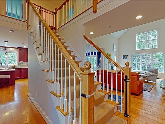 Where the Historic Bel-Aire Estate once sat,nature abounds, and stone wall frames this exceptional home on 2+ parklike acres.Charming expansive Cape-Colonial Style home that exudes a feeling of relaxation,vacation at home,perfect for entertaining.The welcoming open floor plan begins with a stunning two-story foyer that opens to a dramatic two storied Living Room with fieldstone fireplace,opening to large Dining Room, w/sliders to private deck & covered seating area.Incredible gourmet Kitchen,a Chef's Delight, Dacor appliances, Gas Oven-Range, Wall Oven, Sub-Zero Refrig, built-in TV, large stone center island with separate Refrigerated pull out draws, bar sink and plenty of Cabinet space. Prefect Mud Room & Laundry Room off the Kitchen and 3 car attached garage. Private first floor Master Bedroom Suite and full bath with free standing soaking tub and walk-in glass shower. The second floor has 3 additional Bedrooms, two bathrooms and large bonus game room with fabulous millwork, wood paneling, and built-ins. The unfinished walk-out lower level is plumbed for a full bath, has high ceilings and opens to a private terrace. This home offers many notable features internal sprinkler system. The grounds are beautifully landscaped, creating a sanctuary of peaceful outdoor living on multiple levels, decks, and terraces. Just mins to recreation, ball fields, parks, river, schools, library, restaurants, shopping, and Collinsville center. This home has it all country living at its best.