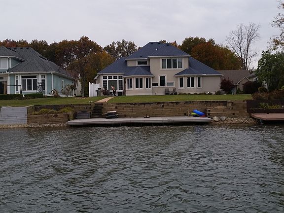 HIDDEN HARBOUR custom waterfront home on 87 acre private lake! Exquisite style with European flair from the stucco exterior through the 2705sf interior. Vaulted Living rm w/FP & built ins open to Bay Breakfast rm w/columns & panoramic view. Designer granite Kitchen w/Island. 1st flr Mst; 2nd flr has 2 bdrms + Loft; Bsmt Rec rm. Stamped concrete patio; 21'Pontoon boat included. Vacation year round!