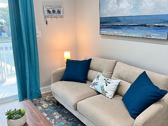 Being sold fully furnished, this turnkey gem also includes a new patio set, kitchen utensils, dishware, and cookware, in addition to decor, a smart TV, bedding, and rugs—everything you need to start living the beach life immediately. Embrace year-round comfort with central AC and benefit from the convenience of your in-unit washer and dryer. The sliding glass doors invite natural light throughout the space and provide easy access to your private balcony.