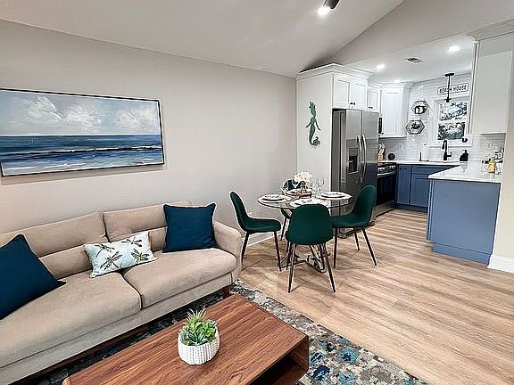 Welcome to your very own beach escape in one of North Wildwood’s most sought-after locations. Nestled on a quiet residential street, this coastal chic unit is just one block from the beach and boardwalk. Newly renovated in 2024 and professionally designed, this 2-bedroom/1-bath top floor condo boasts vaulted ceilings, new water-proof luxury plank flooring throughout, and a brand-new kitchen complete with crown molding, quartz countertops, and stainless steel appliances. Enjoy the brand new spa-like bathroom with tiled shower/tub and flooring.
