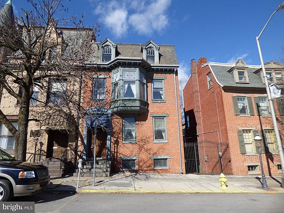 Immaculate 1900 Greek Revival style town house has been lovingly restored and thoughtfully updated over the past decades.  From the original inlaid hardwood floors throughout most of the home to the stunning courtyard, this home boasts prosperity and quality.  Original features includes functional vestibule with double doors (leaded windows), original hardware, custom millwork, 13’ ceilings, walk-in butler’s pantry with functional dumb waiter, and magnificent balustrade. The third floor boasts a guest suite with full kitchen, full bath, and open living room/bedroom. The fully finished basement boasts newer furnace, newer air conditioning unit, dual family rooms, and a fourth full bathroom. The fully fenced back yard with a new lockable gate has been professionally landscaped to include a patio, shed, and off street parking. A home of this refinement in neighboring Philadelphia, Baltimore, or New York City would sell for hundreds of thousands more!  Take advantage of the loving restoration and care these owner’s have placed in their home and enjoy their handiwork for decades to come!  This unique 4 bedroom, 4 bath home is move-in ready! Featuring central air condition, spacious rooms, and stunning yard, it is a rare gem in York County!  If you love urban historic homes, call today so you can enjoy the summer months in your private courtyard!  Subtle doorway treatment, shutters, and modest facade belie the interior of this remarkable property. This brick town house still maintains the original double wooden entry doors leading to the private vestibule and features a new solid wood front door.