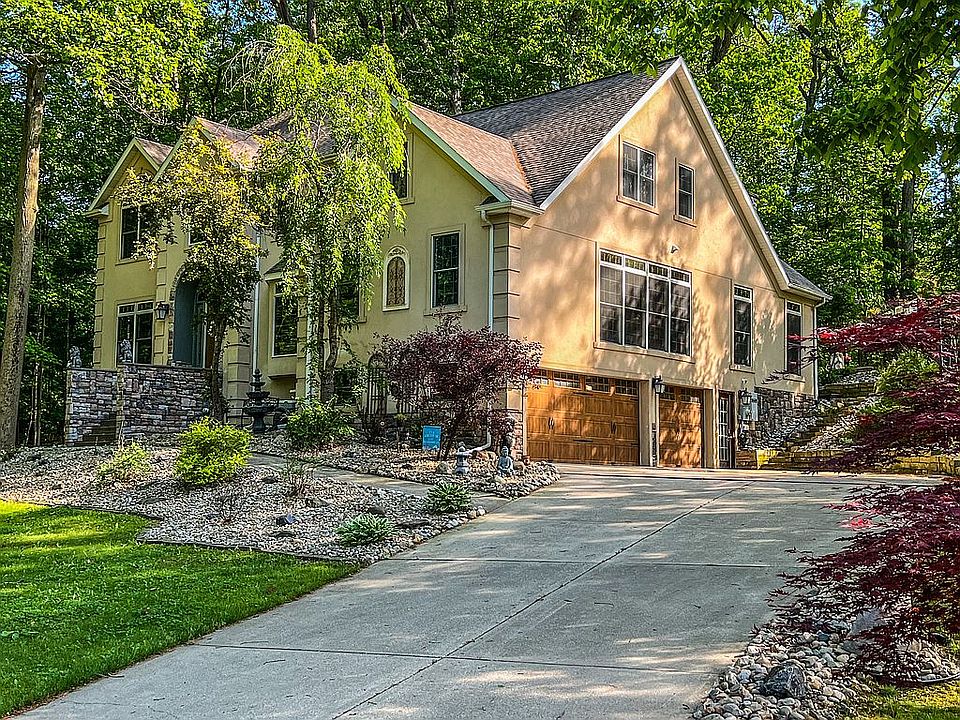 SURROUNDED BY NATURE, THIS 3 BEDROOM HOME FEATURES BRAZILIAN TEAK HARDWOOD FLOORS, FINISHED WALK OUT BASEMENT WITH SAUNA WITH FULL PRIVATE GYM AND ENTERTAINMENT ROOM, 2 FULL BATHS, 2 STUNNING OAK STAIRCASES, WONDERFUL DECK OFF OF MAIN LEVEL FAMILY ROOM OVERLOOKING 1.2 ACRE WOODED LOT, BEAUTIFUL FIELD STONE GAS FIREPLACE, THEATER ROOM WITH 6 HEATED AND MASSAGING RECLINING CHAIRS, COMPLETELY UPDATED HOME.
