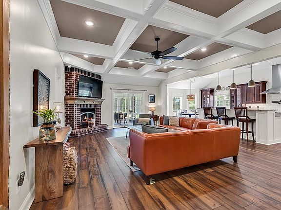 Welcome to your dream home at The Brickyard in Galivants Ferry! This immaculate, custom brick home, built in 2018, is truly one-of-a-kind. As you step into the foyer, you're greeted by gorgeous Pennsylvania slate tile flooring, setting the tone for the elegance that awaits. The main living area features 2 year old Luxury Vinyl Plank (LVP) flooring and the bedroom LVP flooring was installed last year, 2023.The living area is complemented by opulent 10-foot coffered ceilings and a floor-to-ceiling gas brick fireplace, creating a warm and inviting atmosphere. The bright and open floor plan leads you to the remarkable kitchen, which boasts bespoke cabinetry, granite countertops, Thermador stainless steel appliances. Built-in features such as hidden spice cabinets, island storage, and roll-out shelving offer both convenience and style. An adjacent built-in office adds functionality to the space. The laundry room and butler's pantry feature tile flooring, Samsung washer and dryer, an apron front sink, and wood cabinetry, providing ample storage and workspace. The laundry room leads to a spacious two-car garage with cement flooring and a workshop area. The Primary Bedroom is a true retreat, with a tray ceiling, walk-in closet, and ensuite bath. The bathroom is adorned with marble tile and countertops, seeded glass light fixtures, and a custom-fitted glam vanity with a back-lit mirror. The walk-in shower features dual shower heads, and double sinks complete the luxurious space. On the first floor, you'll find two additional bedrooms with large closets and a second full bath with marble tile, tile flooring, and seeded glass light fixtures. Upstairs, an enormous bonus room offers privacy and versatility, complete with a large closet and full bath. One of the many unique features of this home is the attic with easy access via just four steps, providing ample storage space. From the 300 square foot enclosed porch you are greeted by a spacious fenced backyard with a firepit and room to sprawl in, offering even more space to enjoy the beautiful surroundings. The open yard, bordered by trees, provides the perfect opportunity to add a pool and create your own private oasis. All measurements are estimated and must be verified by the buyer. Don't miss your chance to own this exceptional home – schedule a showing today!