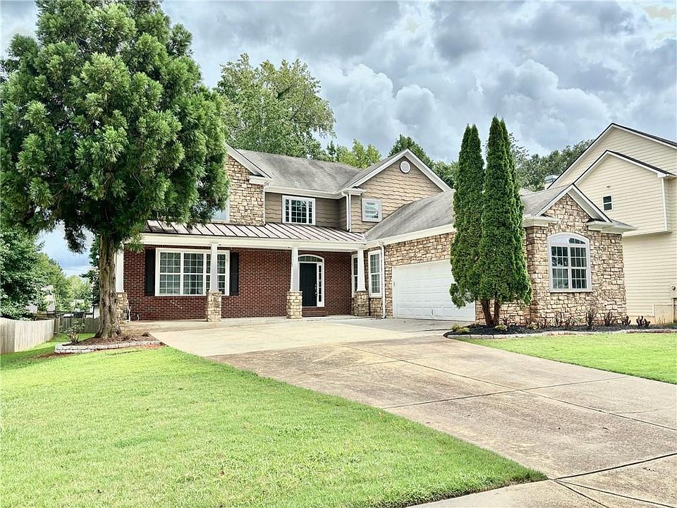 NEW 2024 UPDATES! This GORGEOUS home is freshly painted, inside and out, and all of the kitchen and bath cabinets are upgraded. The improvement is significant and beautiful! Step into a home where new beginnings await! Imagine greeting your friends on the rocking chair front porch of this southern charmer. This bright and sunshiny home features an incredible open layout, perfect for entertaining. The formal dining room, bathed in natural light, will be your favorite spot to gather with friends and family, creating cherished memories. The spacious eat-in kitchen is truly the heart of the home. It’s complete with a large island with a breakfast bar, stainless steel appliances, and granite counters. The kitchen island cabinets are in the process of being replaced by new ones! Picture ending your days in the impressive two-story fireside family room, a cozy space for relaxation. The oversized master retreat on the main floor offers a large walk-in closet and a sitting room, providing a private sanctuary. The master suite features dual vanities, a separate shower, and a soaking tub, offering a spa-like experience at home. The full unfinished basement presents unlimited possibilities. Create an in-law suite, home gym, game room, or media room – the choice is yours! Upstairs, three generously sized secondary bedrooms provide privacy for guests or ample space for family sleep and play. The BIG BACKYARD is perfect for play, gardening, or simply relaxing on a weekend. This home is located in a community with sidewalk access to the newly developed Jackson County public school system. Come and take a look at this beauty and start your new chapter in a home filled with southern charm and modern updates!